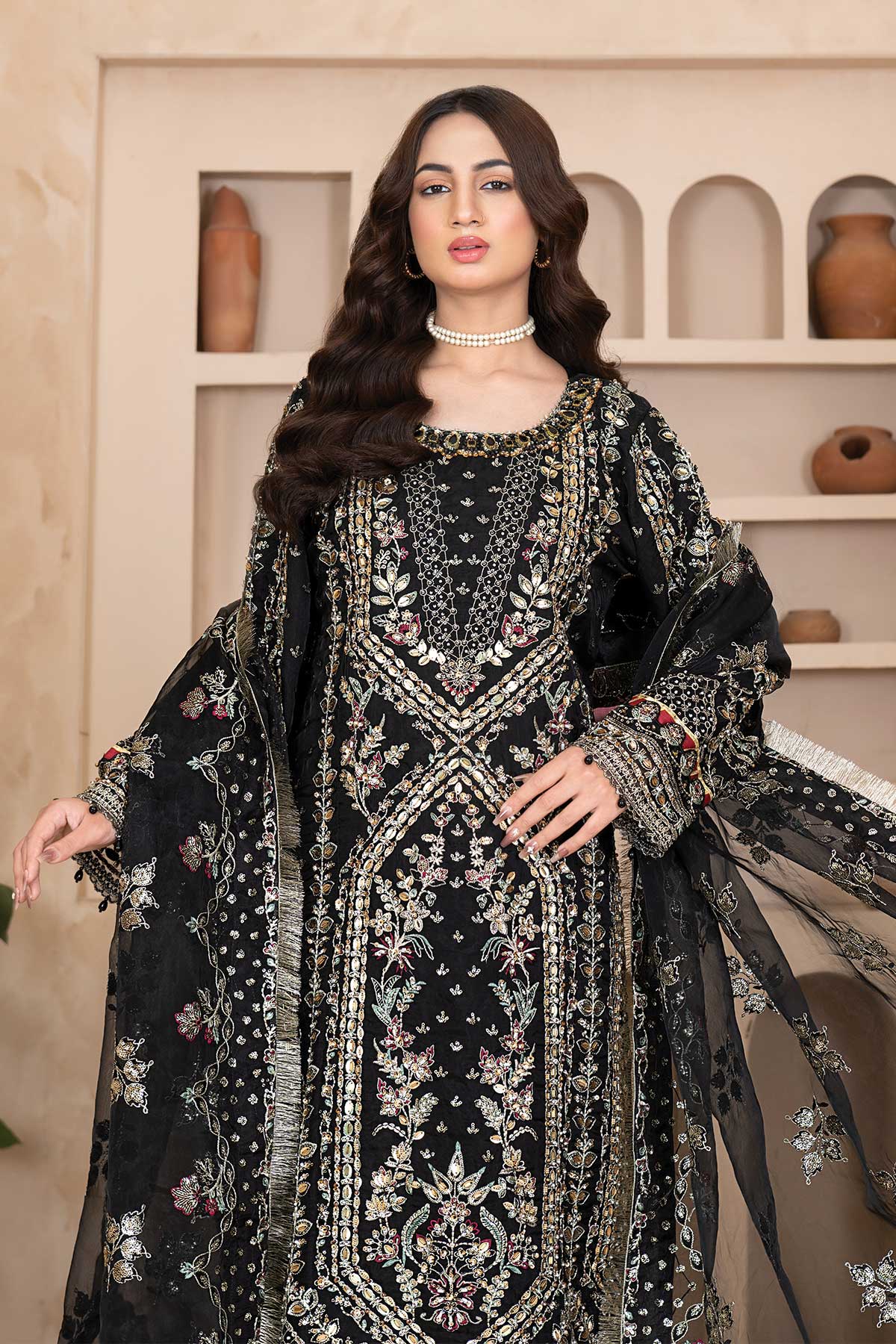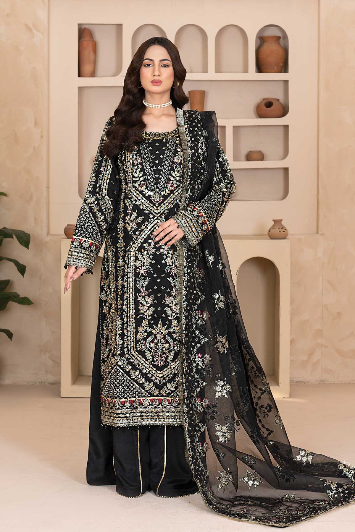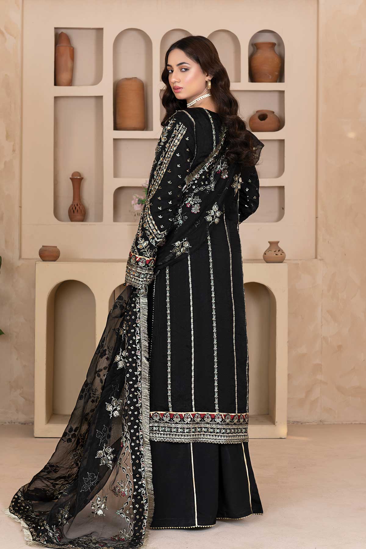 A graceful formal ensemble in a refreshing mint green hue, designed with intricate embroidery that reflects timeless elegance. The shirt features delicate floral threadwork accented with subtle embellishments, complemented by scalloped lace details along the hem and sleeves. Paired with matching straight-cut trousers, the look is completed with a beautifully printed and embroidered dupatta finished with ornate borders. Ideal for festive gatherings, daytime weddings, and formal occasions, this ensemble offers a perfect balance of softness, sophistication, and refined craftsmanship.